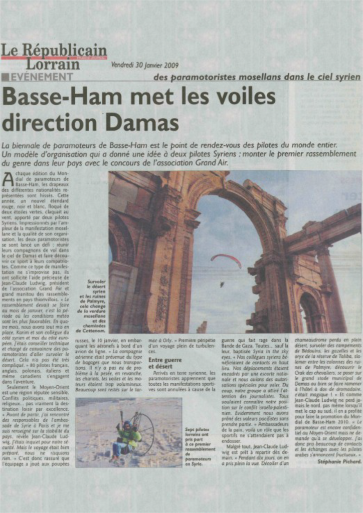 Co-organisateur d’un Rallye de 90 pilotes de paramoteur en Syrie